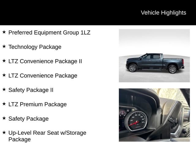 Beyond its impressive performance, this LTZ model is loaded with premium features that will elevate your driving experience. The Technology Package includes advanced safety and convenience features like HD Surround Vision, Rear Camera Mirror, and a 15-inch Head-Up Display. The LTZ Premium Package adds even more luxury touches, like a power sunroof, 20-inch polished wheels, and a premium Bose audio system.