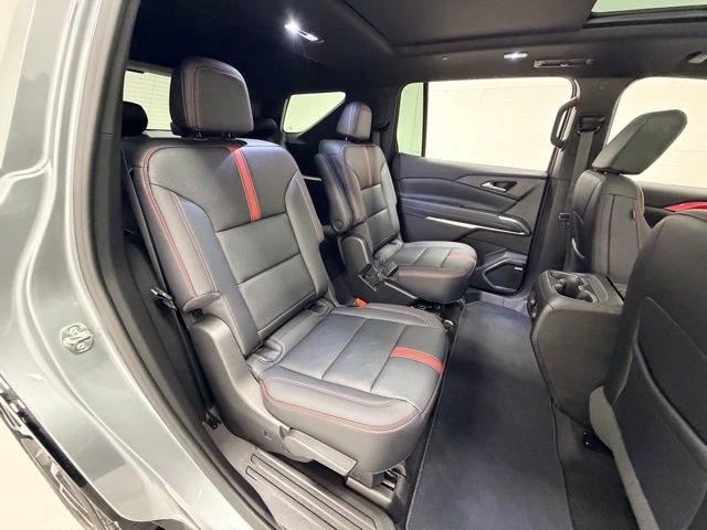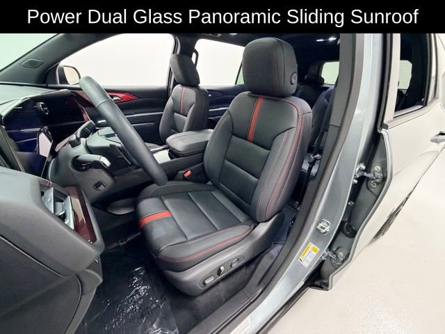 Step inside and you'll be greeted by a wealth of advanced technology, including Apple CarPlay, Android Auto, and a state-of-the-art navigation system. The memory seats and heated steering wheel add a touch of luxury, while the ventilated front seats and heated rear seats keep everyone comfortable no matter the weather. And with the stunning power dual-glass panoramic sunroof, you can enjoy the great outdoors from the comfort of your Traverse.