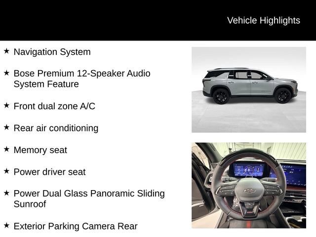 We're confident that this 2026 Chevrolet Traverse RS 4DR SUV is the perfect vehicle for you. With its impressive features, exceptional performance, and unbeatable value, it's a must-see for any discerning SUV buyer. Come in and experience it for yourself we know you'll be impressed.