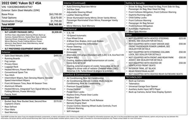 Elevate your driving experience with the 2022 GMC Yukon SLT. Contact us today to learn more and take the first step towards owning this remarkable vehicle.