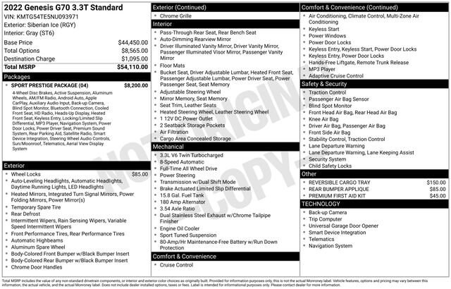 Elevate your driving experience with this captivating 2022 Genesis G70 3.3T. This meticulously crafted sports sedan boasts a powerful V6 engine, seamless 8-speed automatic transmission, and all-wheel drive, delivering an exhilarating performance that will leave you craving the open road.