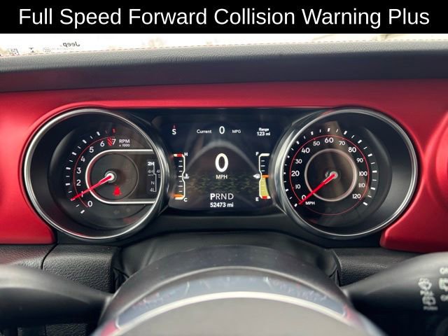Inside, the Black, Leather Trimmed Bucket Seats provide exceptional comfort and support, while the advanced safety features, including Blind Spot & Cross Path Detection, Auto High Beam Headlamp Control, and Full Speed Forward Collision Warning Plus, help keep you and your passengers secure on the road. The Integrated Off-Road Camera and the Mopar Grab Handle Kit further enhance the Wrangler's off-road capabilities, making it the ultimate companion for your next outdoor excursion.