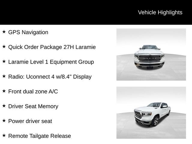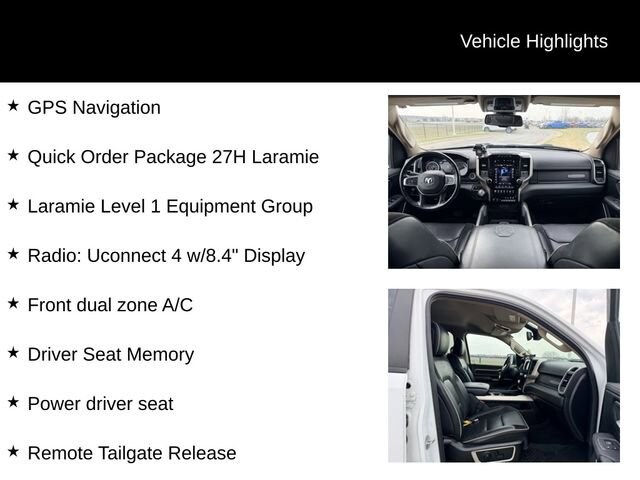 The Laramie LT trim level adds a wealth of premium features, including leather-trimmed bucket seats, a 12-inch touchscreen display with navigation, and a suite of advanced safety technologies like Blind Spot Monitoring and Rear Park Assist. The striking 20-inch wheels and chrome accents give this Ram 1500 a bold, head-turning presence on the road.