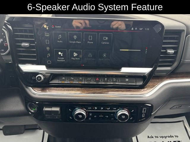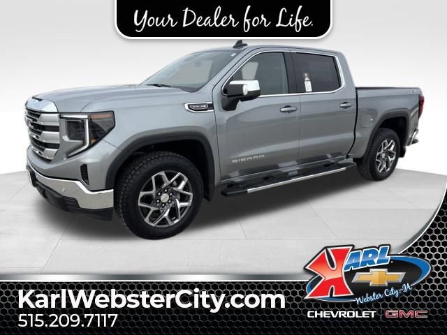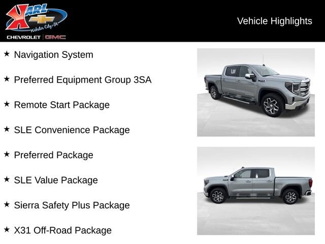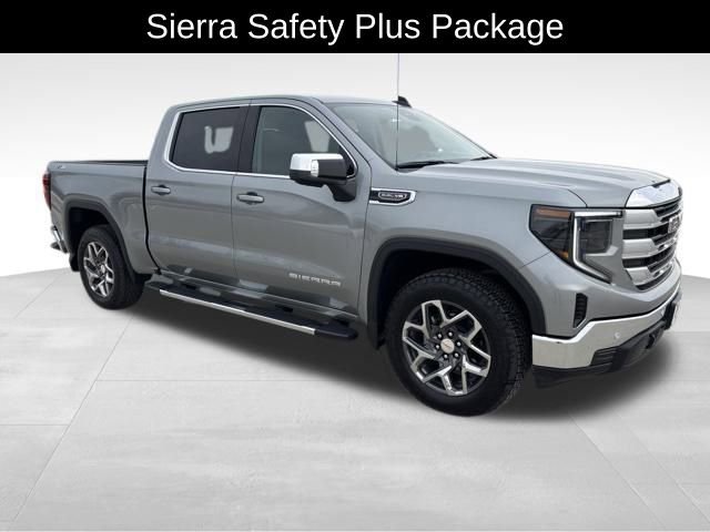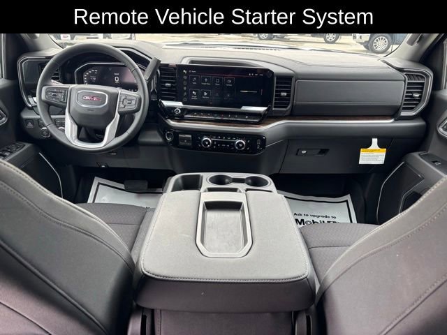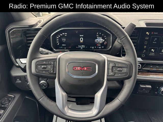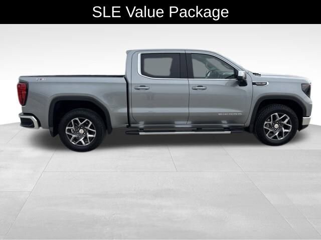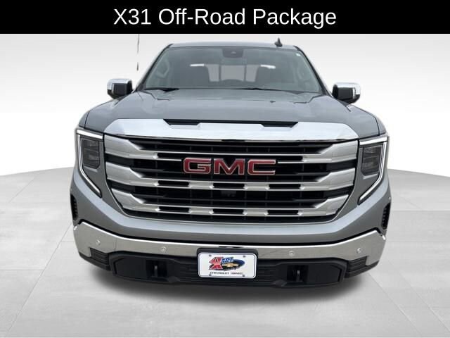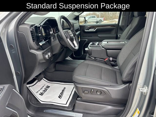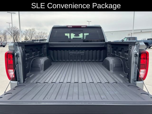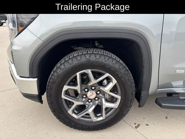 10-Speed Automatic, 4WD, Black Cloth, 120-Volt Bed Mounted Power Outlet, 120-Volt Interior Power Outlet, 2 Charge/Data USB Ports, 2 Type-C Charge-Only Rear USB Ports, 4-Way Manual Passenger Seat Adjuster, 6-Speaker Audio System Feature, Adaptive Cruise Control, AM/FM radio: SiriusXM with 360L, Auto-Locking Rear Differential, Automatic temperature control, Brake assist, Cloth Seat Trim, Color-Keyed Carpeting Floor Covering, Compass, Deep-Tinted Glass, Dual Exhaust System, Dual front impact airbags, Dual front side impact airbags, Dual-Zone Automatic Climate Control, Electric Rear-Window Defogger, Electronic Stability Control, External Engine Oil Cooling, Following Distance Indicator, Forward Collision Alert, Front Center Armrest w/Storage, Front Frame-Mounted Black Recovery Hooks, Front Pedestrian Braking, Front reading lights, Front Rubberized-Vinyl Floor Mats, Front wheel independent suspension, HD Rear Vision Camera, HD Surround Vision, Heated front seats, Heavy-Duty Air Filter, High Capacity Suspension Package, Hill Descent Control, Hitch Guidance, Hitch View, Integrated Trailer Brake Controller, LED Cargo Area Lighting, Navigation System, Occupant sensing airbag, Off-Road Suspension, OnStar Services Capable, Overhead console, Passenger door bin, Perimeter Lighting, Power Door Locks, Preferred Equipment Group 3SA, Preferred Package, Push Button Start, Radio: Premium GMC Infotainment Audio System, Rear Cross Traffic Braking, Rear Pedestrian Detection, Rear Rubberized-Vinyl Floor Mats, Rear step bumper, Rear Wheelhouse Liners, Rear window defroster, Remote Start Package, Remote Vehicle Starter System, Sierra Safety Plus Package, SLE Convenience Package, SLE Value Package, Standard Suspension Package, Steering Wheel Audio Controls, Telescoping steering wheel, Trailer Camera Provisions, Trailer Side Blind Zone Alert, Trailering Package, Universal Home Remote, Wheels: 17 x 8 Bright Silver Painted Aluminum, Wheels: 18 x 8.5 6-Spoke Machined Aluminum, Wi-Fi Hotspot Capable, Wireless Apple CarPlay/Wireless Android Auto, X31 Hard Badge, X31 Off-Road Package. Sterling Metallic 2026 GMC Sierra 1500 SLE 4D Crew Cab EcoTec3 5.3L V8 15/18 City/Highway MPG 10-Speed Automatic 4WD