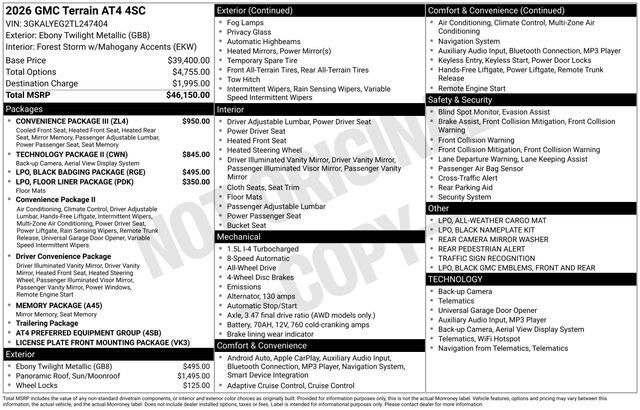 The 2026 GMC Terrain AT4 is a true testament to the brand's commitment to innovation and craftsmanship. With its unparalleled capabilities, premium amenities, and striking good looks, this SUV is poised to exceed your expectations. Experience the difference for yourself by scheduling a test drive today. Price includes: $1000 - Buick GMC Bonus Cash. Exp. 04/30/2026