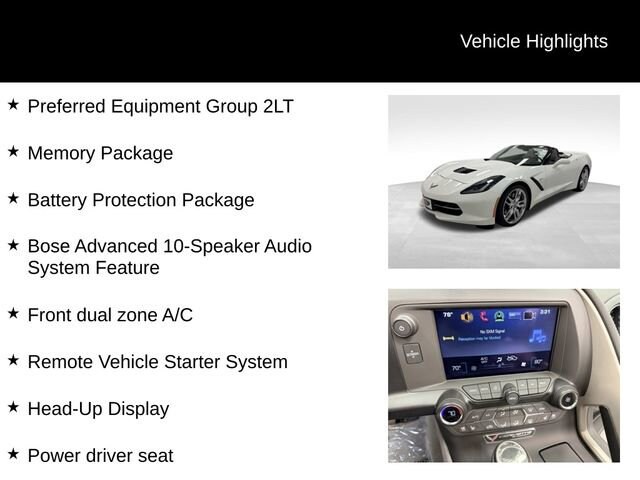 Discover the thrill of driving a true performance icon - the 2016 Chevrolet Corvette Stingray Z51 2LT. This stunning sports car is the perfect blend of power, style, and cutting-edge technology, ready to elevate your driving experience to new heights.