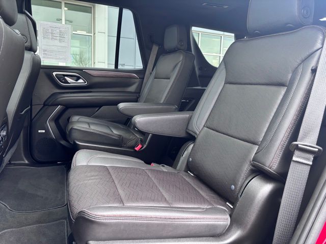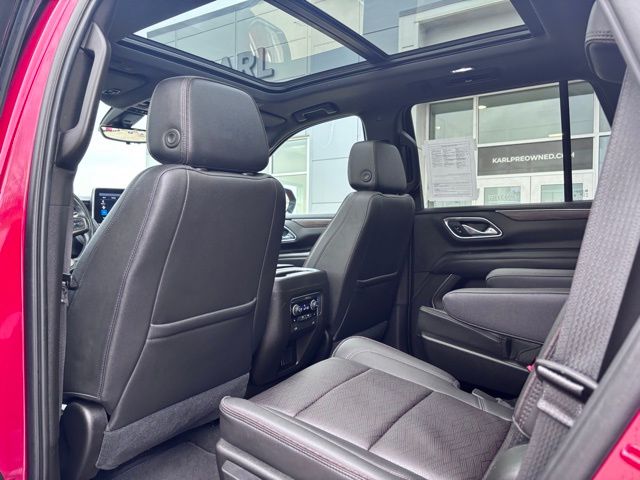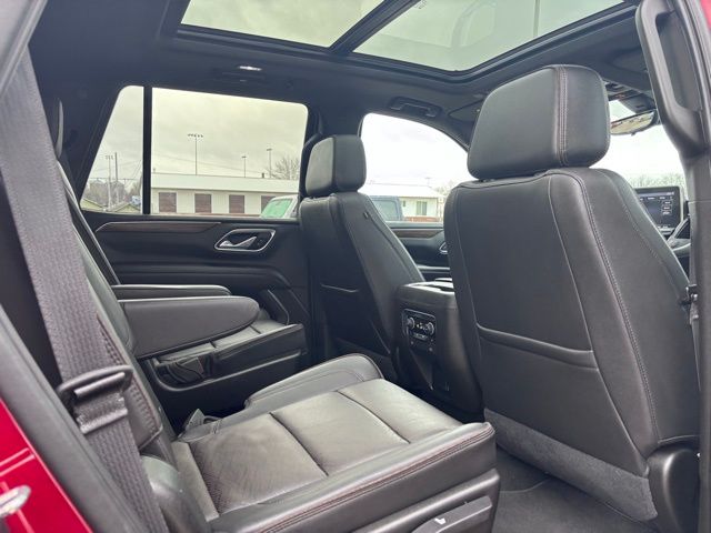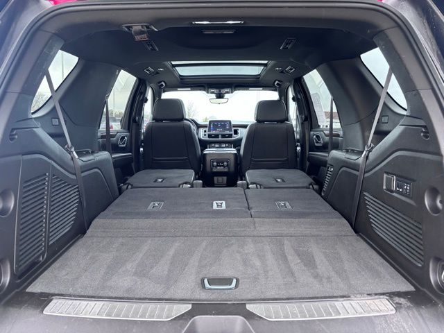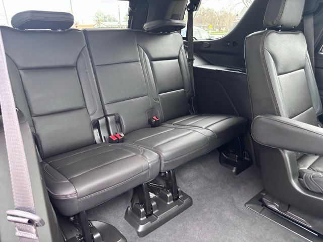 Step inside to premium comfort featuring heated and ventilated leather front bucket seats, heated second-row captains chairs, a power-folding third row, tri-zone automatic climate control, and memory settings for personalized convenience. The spacious cabin is loaded with upscale touches including a rear camera mirror, power sliding center console, and a panoramic sunroof for an open, airy feel. This Tahoe has a unique look with it's black "tuxedo" wrap covering the roof and upright pillars.