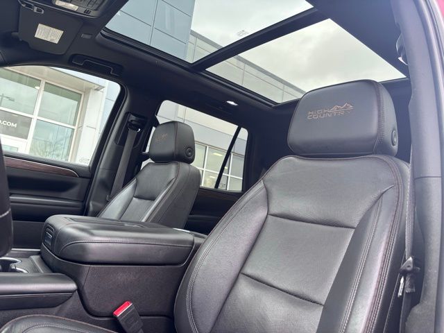 On the outside, this High Country stands out with bold styling including 22" wheels with chrome inserts, LED lighting, hands-free power liftgate, power retractable assist steps, blacked-out emblems, roof rack cross rails, and dual exhaust with dual tipsmaking a strong statement wherever it goes.