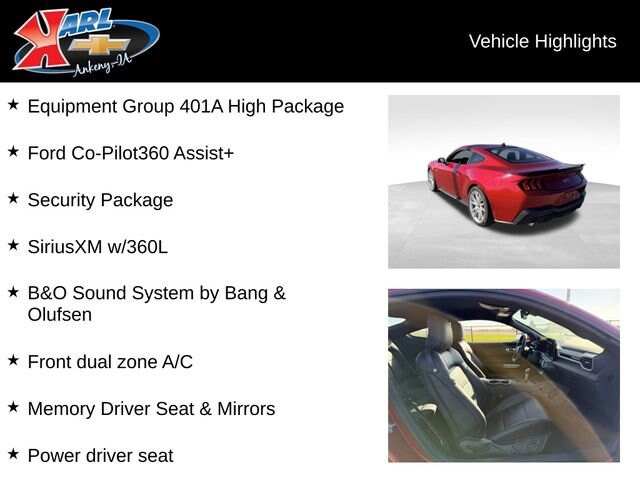 Whether you're looking for a thrilling daily driver or a weekend sports car, this 2024 Ford Mustang GT Premium GT PREMIUM FASTBACK is the perfect choice. Come in to Karl Chevrolet of Ankeny, the Nation's #1 CarBravo Certified Dealer, and experience the power and performance of this incredible Mustang for yourself.
