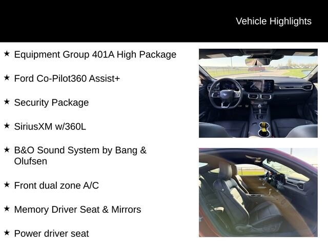 This stunning 2024 Ford Mustang GT Premium GT PREMIUM FASTBACK is the perfect combination of power, style, and technology. With its powerful 5.0L V8 Ti-VCT engine and 10-speed automatic transmission, this Mustang delivers an exhilarating driving experience that's sure to get your heart racing. The Rapid Red Metallic Tinted Clearcoat exterior is sure to turn heads wherever you go, while the premium interior features leather-trimmed bucket seats, a heated steering wheel, and a premium B&O sound system that will immerse you in your favorite music.