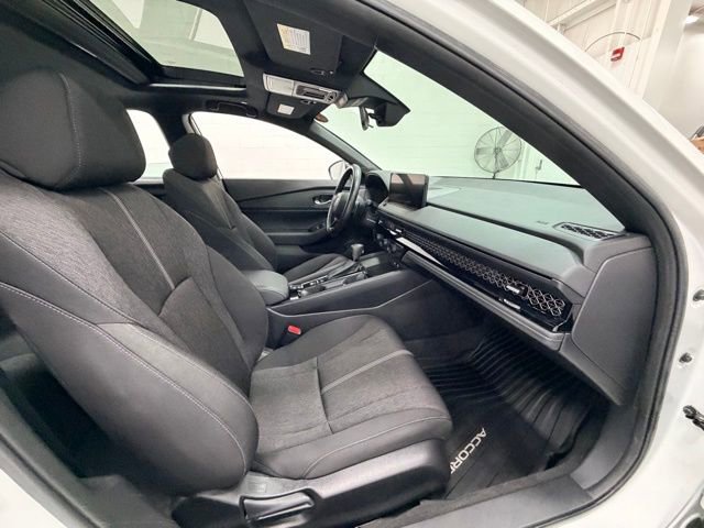 This 2023 Honda Accord Hybrid Sport SPORT SEDAN is the perfect blend of style, efficiency, and technology. With its sleek white exterior and stunning 19-inch Berlina Black wheels, this Accord Hybrid commands attention on the road. Under the hood, the 2.0L 16V DOHC engine paired with the eCVT transmission delivers an impressive 46 MPG in the city and 41 MPG on the highway, making it an exceptional choice for the eco-conscious driver.