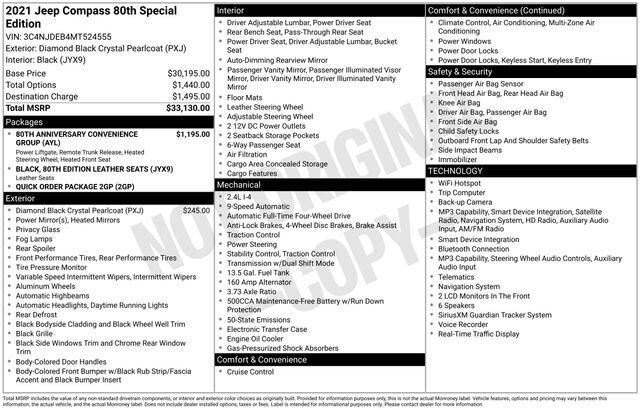 This Jeep Compass 80th Special Edition is packed with a wealth of advanced technology and convenience features, including:
